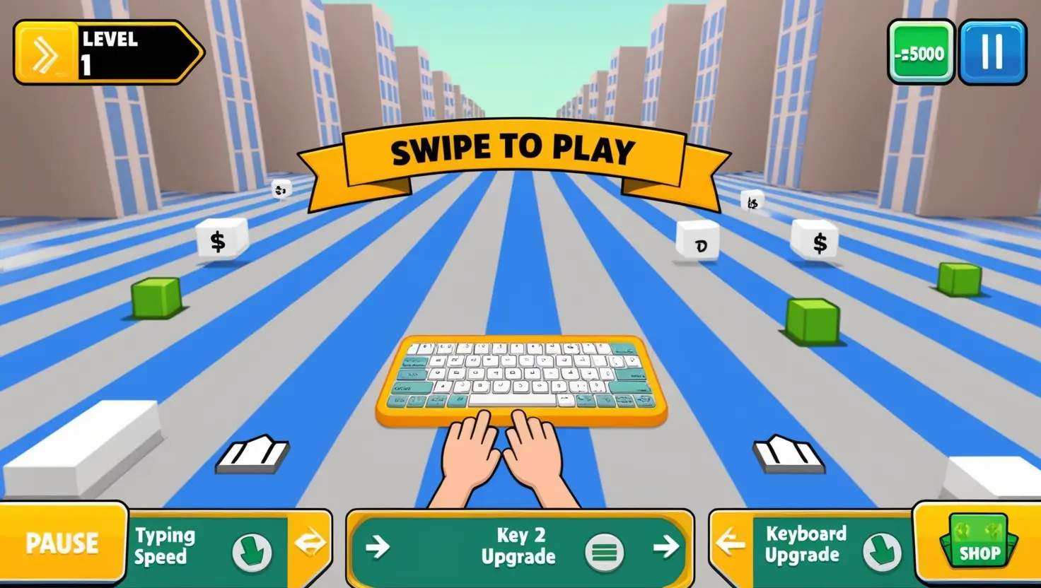 “Typing Shooter” brings a revolution to the classic runner genre by introducing typing mechanics into fast-paced gameplay. As a colorful keyboard avatar, players shall run through vibrant, dynamic 3D environs with obstacles and enemies in their way. The target is to type as many keywords that are displayed as fast and accurately you can to shoot down enemies and clear your path.